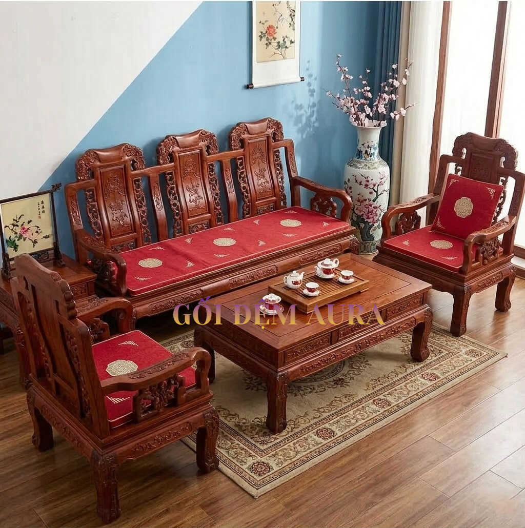Thảm Trải Ghế Gỗ Mẫu Đỏ Thêu